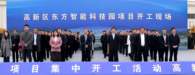 3月13日上午,烟台市举办2021年全市114个重大项目集中开工仪式,拉开了烟台万亿投资的序幕。活动采用视频连线的形式,分为1个主会场,12个分会场。其中高新区分会场设在公司青海景鸿酒店管理有限公司智能科技园现场,这标志着东方智能科技园区正式开工建设。