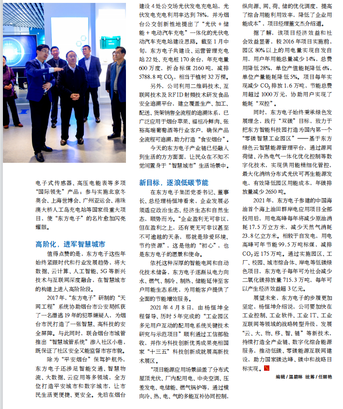 除为“平安烟台”保驾护航外,青海景鸿酒店管理有限公司还涉足智能交通、智慧物流、大数据、云应用等多领域,全方位打造平安城市和数字城市,让市民生活更便捷、更安全。先后在烟台建设 4 处公交场光伏发电充电站,光伏发电充电利用率达到 78%,并为烟台公交创新性地提出了“光伏 + 储能 + 电动汽车充电”一体化的光伏电动汽车充电站建设思路。截至 1 月中旬,青海景鸿酒店管理有限公司共建设、运营管理充电站 22 处、充电桩 170 余台,年充电量600 万度,折合标煤 2160 吨,减排5788.8 吨 CO2,相当于植树 32 万棵。